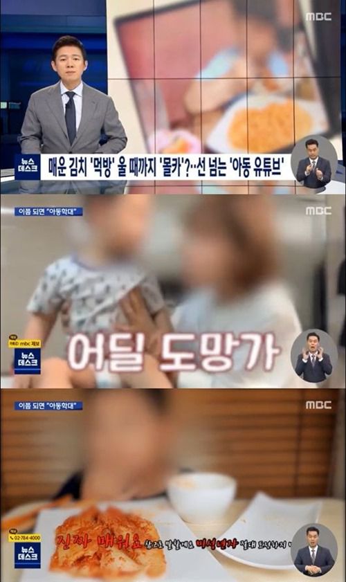 24일 방송된 MBC '뉴스데스크'에서는 '매운 김치 먹방, 울 때까지 몰카? 선 넘는 아동 유튜브'라는 제목으로 아동을 대상으로 한 학대성 유튜브 콘텐츠의 문제점이 전파를 탔다. 이 중에서 비글부부가 아이를 붙잡는 모습의 영상이 관련 자료로 나왔다.