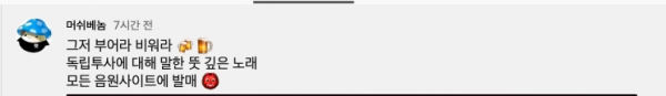 후반 벌스 부분은 다음과 같다. 요동쳐 투쟁의 리듬 미래는 또 다른 광복의 이름