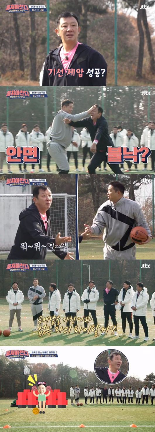 어제(6일) 방송된 JTBC '뭉쳐야 찬다'에서는 '매직 히포' 현주엽이 대어 용병으로 등장하는 한편, 출중한 실력의 상대팀과 멋진 한 판 승부를 펼친 전설들의 활약으로 안방을 달궜다.