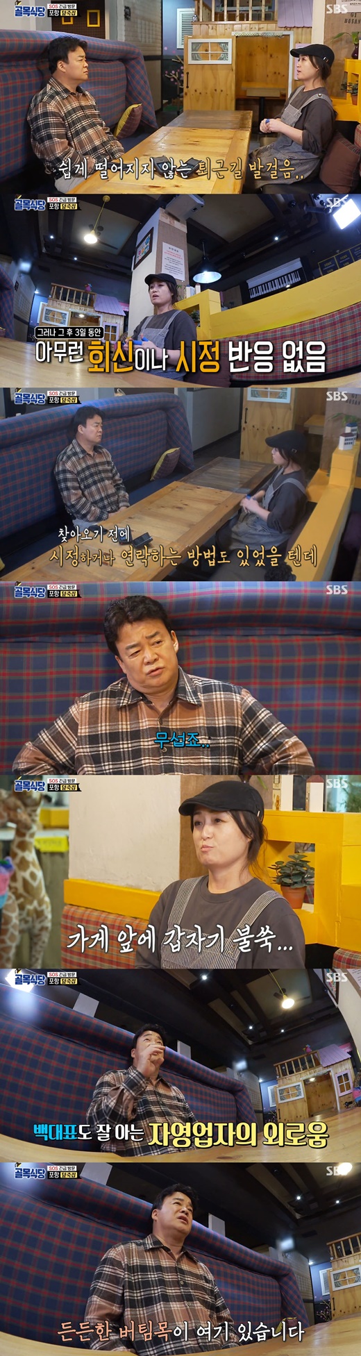 백종원은 "그분은 워낙 착실해서 문제가 없겠거니 했는데 이런 문제가 생기네"라고 한탄하며 "우리라도 보호해드려야 한다. 식당을 하면 기댈 데가 없어서 외롭다. 알면서도 당하는 것도 안 되게 많다. 좋은 선례를 남겨야 한다"라고 강조했다.