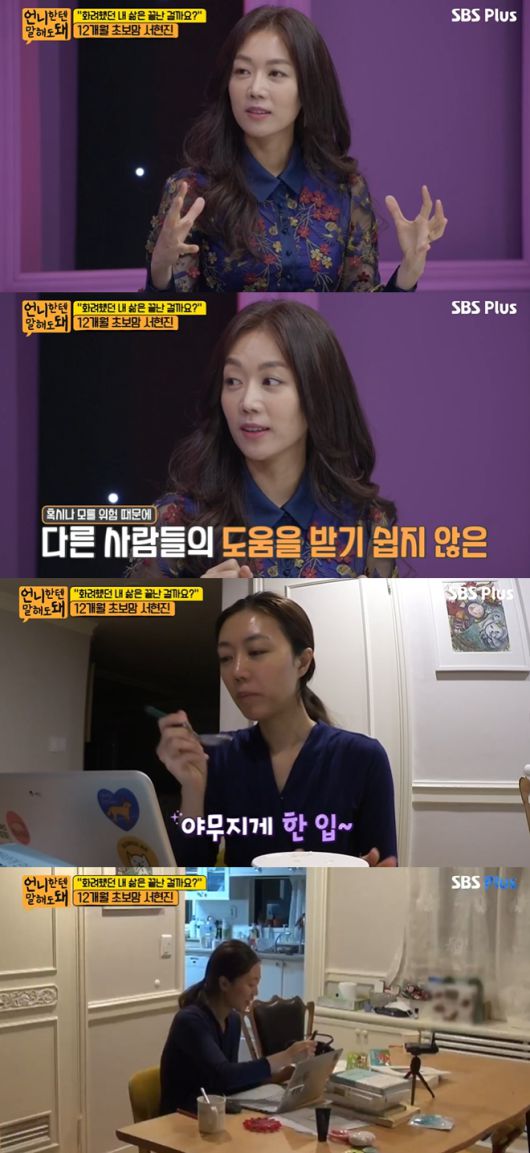 서현진은 17일 방송된 SBS플러스 '언니한텐 말해도 돼'에 출연해 육아 일상을 공개하고 평소 고민을 고백했다.