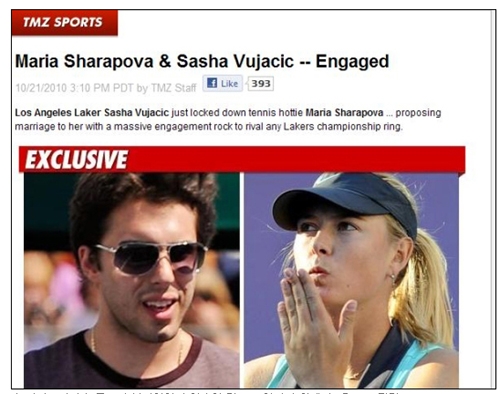 샤라포바는 18일(한국시간) 자신의 소셜네트워크서비스(SNS) 계정에 길크스와 함께 한 사진과 동영상을 올리며 "우리가 처음 만난 날부터 (길크스의 프로포즈에) 예스라고 말했다. 이것은 우리 둘만의 작은 비밀이었다"고 밝혔다.