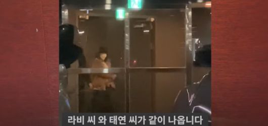 영상에 따르면 라비는 25일 오전 10시 쯤 태연의 자택인 성수동 트리마제에 도착해 직접 비밀번호를 누르고 안으로 들어갔다. 한시간 후 라비와 태연은 같이 모습을 드러낸다. 라비는 반려견을 품에 안고 있는 태연의 어깨를 감싸며 자연스럽게 에스코트했다.