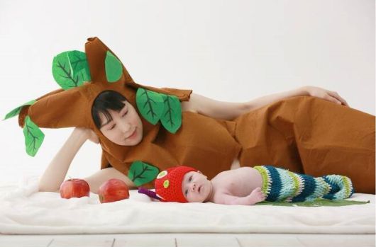 공개된 사진에서 사유리는 사과나무 복장을 하고 있고, 그의 아들은 귀여운 애벌레로 변신해 엄마의 옆에 누워있다. 사유리는 그런 아들을 바라보며 흐뭇하게 웃고 있다.