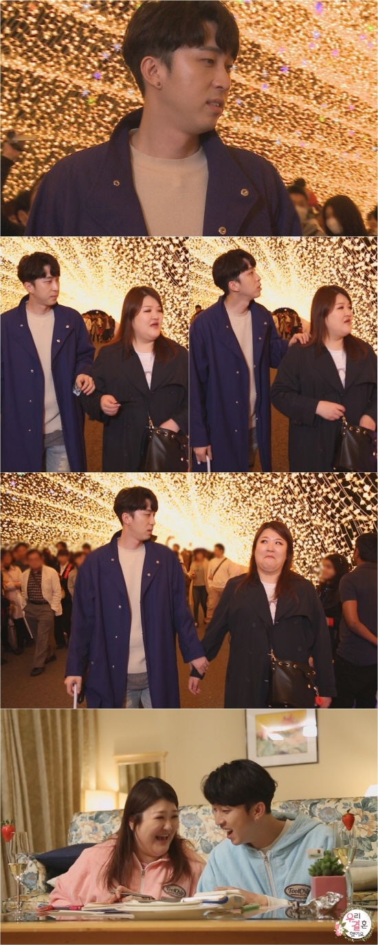 [스타인뉴스 김은영 기자]‘우리 결혼했어요’ 슬리피-이국주의 ‘간질간질’ 야릇한 손잡기 현장이 포착돼 시선을 모은다. 일본 나고야 신혼여행을 떠난 슬리피-이국주는 빛의 터널을 통과하며 손잡기에 성공한 것으로 전해져 더욱 궁금증을 증폭시키고 있다.