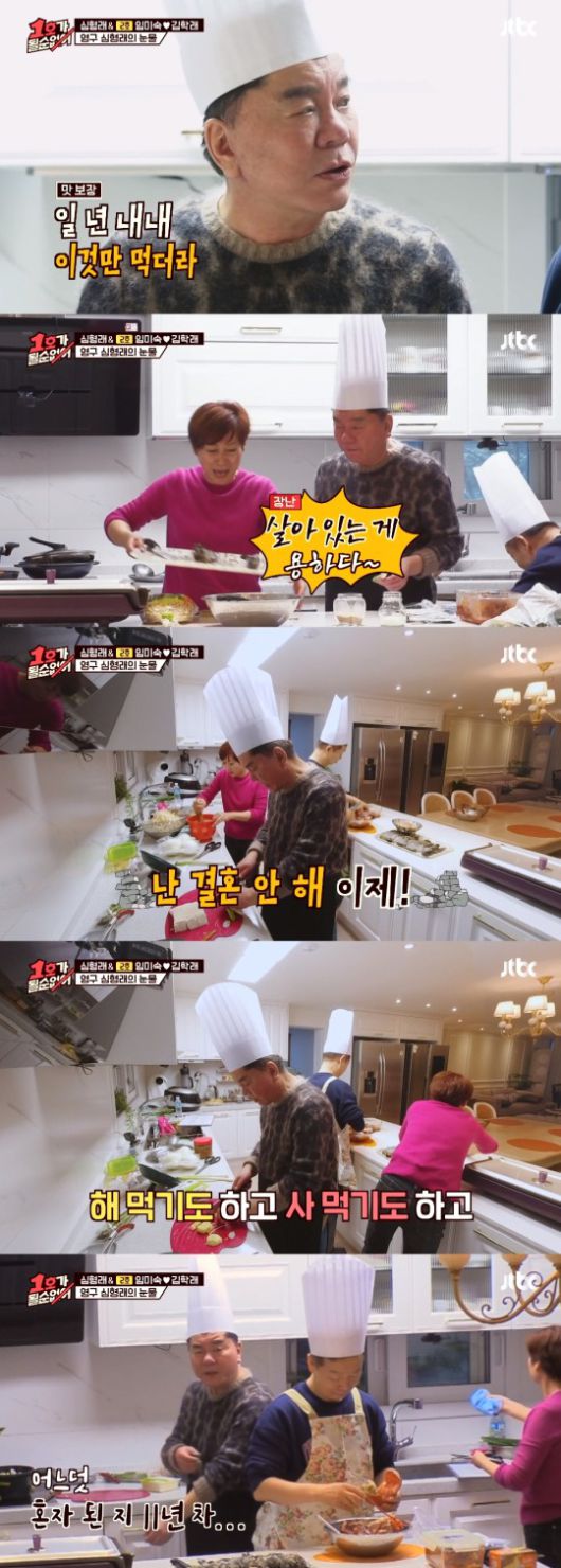 임미숙은 예전에 비싼 철판 요리를 사주며 많이 베풀었던 심형래에게 고마웠던 마음을 맛있는 철판 요리 생일상으로 전했다. 임미숙은 심형래에게 “집에 혼자 있는데 해 먹는가”라고 물었고, 심형래는 “해 먹기도 하고 사 먹기도 한다. 내가 이혼한 지 11년 정도 됐다. 이제 재혼은 안 한다. 혼자 사는 게 좋다”고 담담하게 말했다.