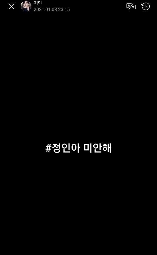 지민은 지난 3일 오후 방탄 소년단 공식 위버스에 '#정인아 미안해'라는 글을 게재했다. 이는 2일 방송된 SBS 프로그램 '그것이 알고싶다- 정인이는 왜 죽었나?' 편 방송 이후 SNS 상에서 이어지고 있는 '정인아 미안해' 챌린지에 동참한 것이다.
