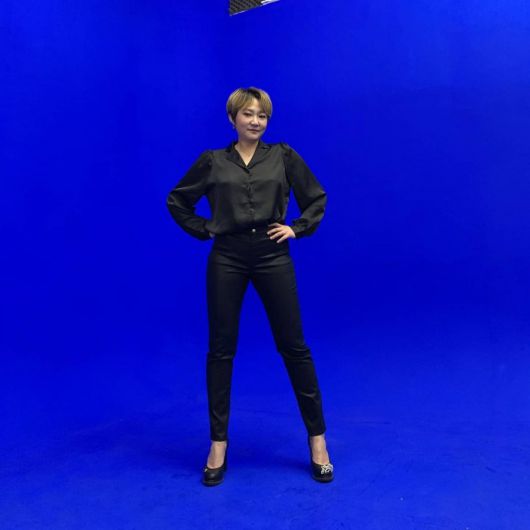 공개된 사진에는 검은색 바지와 블라우스를 착용한 김현숙이 볼살 하나 없는 작은 얼굴을 뽐낸 모습이 담겼다.