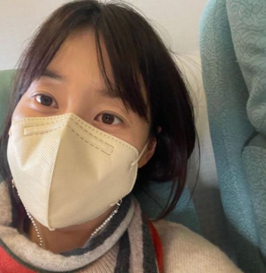 공개된 사진 속 한지혜는 마스크를 쓴 채 셀카를 찍고 있는 모습이다.