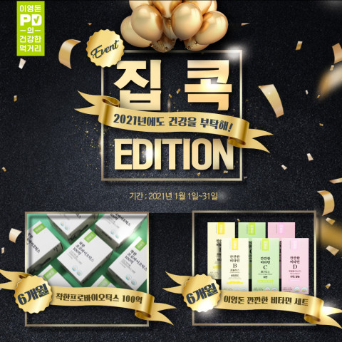코로나19 감염 예방을 위한 집콕에디션은 깐깐한 비타민(6개월분)과 착한유산균(6개월분) 세트할인 상품으로 구성됐다.