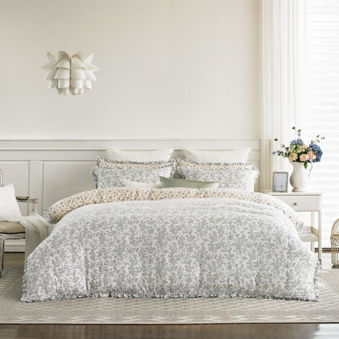 먼저 ‘프리티가든’은 싱그러운 잔꽃을 표현한 제품으로 유럽 정원의 플라워 가든을 연상케 한다. 이불 끝에는 3cm가량의 레이스 디테일을 더했다. 화이트 인테리어와 내추럴한 우드, 라탄 가구와 잘 어우러져 방안 분위기를 더욱 화사하게 연출할 수 있다. 면 30%와 모달 70% 비율의 소재로 통기성, 흡수성, 선명한 색감 등이 특징이다.