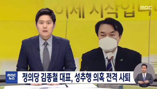 정의당 젠더인권본부장인 배복주 부대표는 이날 오전 국회에서 기자회견을 열고 "오늘 당원과 국민 여러분에게 매우 부끄럽고 참담한 소식을 알리게 됐다"며 "지난 1월 15일 김종철 대표의 성추행 사건이 발생했고 피해자는 당 소속 국회의원인 장혜영 의원"이라고 밝혔다.