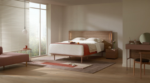 또한 부부의 라이프스타일에 따라 모션베드 및 트윈베드 구성이 가능해 매일 집에서 호캉스하듯 지친 하루의 피로를 풀어주는 완벽한 휴식 공간을 누릴 수 있다. 협탁은 400폭과 800폭 두 가지 크기가 있으며, 거치형 수납박스와 조명이 기본 구성돼 있다.