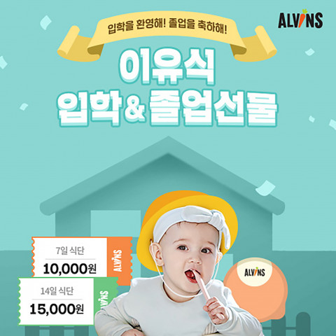 먼저, 이유식을 갓 시작한 이유식 입학생에게는 7일분 식단 주문 시 1만원의 할인 쿠폰을 제공하고, 14일분 식단을 주문할 경우 1만5000원 할인 쿠폰을 증정한다. 이유식 단계가 끝난 이유식 졸업생에게는 엘빈즈의 영양식 반찬과 국이 함께 구성된 식단 할인 혜택이 주어진다. 7일분 주문 시 1만원 할인 쿠폰을, 14일분 식단 주문 시 1만5000원 할인 쿠폰을 각각 제공한다.