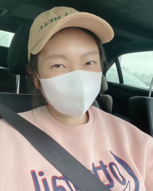 사진 속 정경미는 마스크를 쓰고 차 안에서 셀카를 촬영하고 있다.