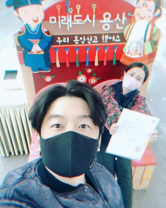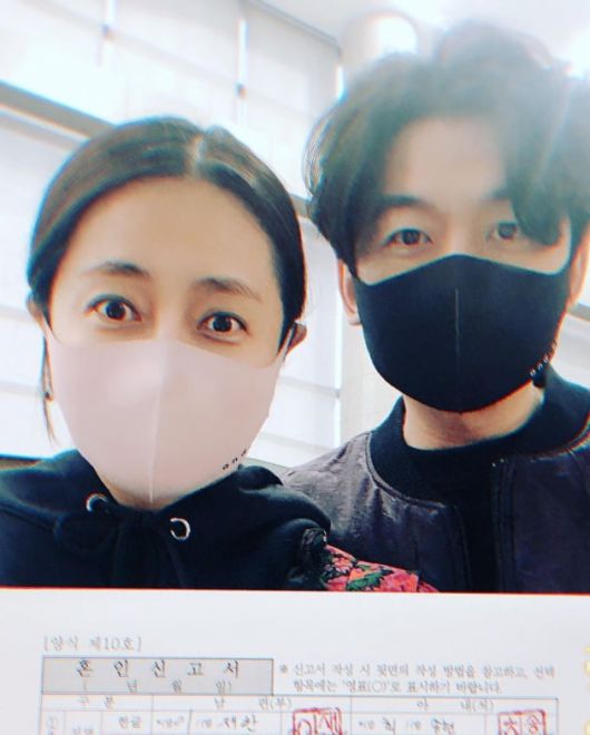 공개된 사진에서 최송현과 이재한은 구청을 찾아 혼인신고를 마쳤다. 혼인신고서에는 남편 이재한, 아내 최송현이라고 두 사람의 이름이 나란히 써있고 도장도 찍혀있다. 마스크를 쓰고 있어도 두 사람의 행복한 표정이 느껴지는 듯하다.