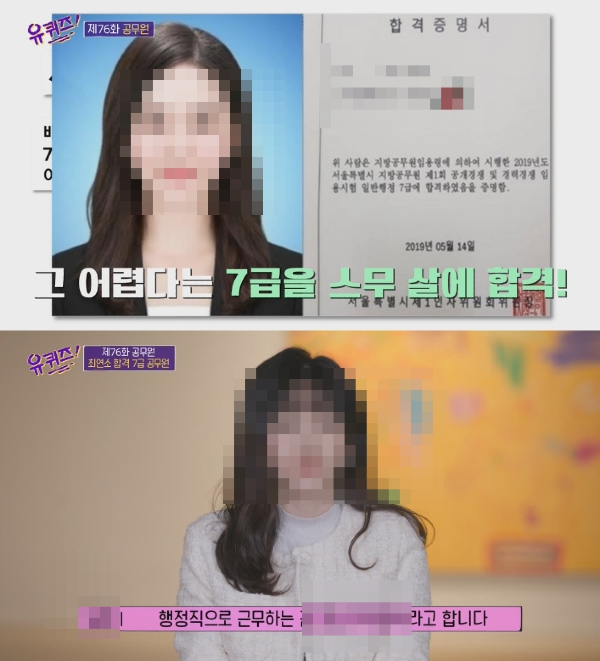한편 A씨는 '유 퀴즈 온 더 블럭'에 출연해 만 20세의 나이로 7급공무원에 합격한 수기를 공개해 세간의 주목을 끌었다.
