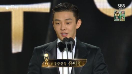 이날 남우주연상의 영예는 '소리도 없이'의 유아인이 차지했다. 이름이 호명되자 유아인은 눈을 크게 뜨고 놀란 표정을 지었다.