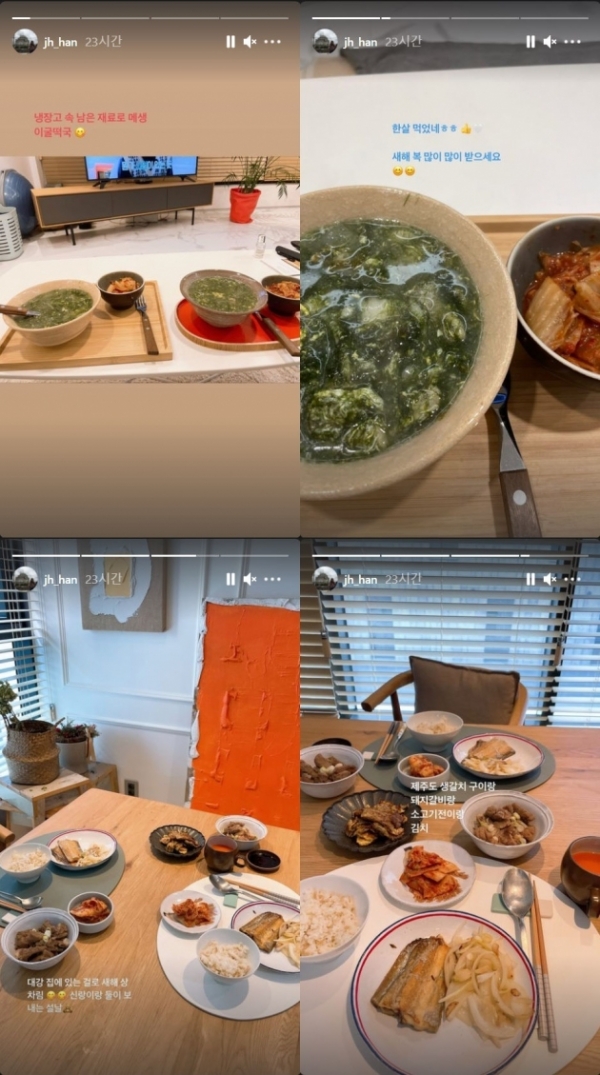 한지혜는 13일 인스타스토리를 통해 설날 상차림을 찍은 사진 네 장을 올렸다.