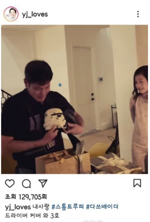 정 부회장은 14일 인스타그램에 “내사랑 #스톰트루퍼 #다쓰배이더 드라이버 커버와 3호”라는 글과 함께 짧은 영상을 올렸다. 그는 그동안 셋째 딸인 해윤(8)양을 ‘3호’라고 소개해왔다.