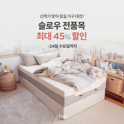 이와 함께 슬로우는 다가오는 신학기를 맞아 2월 22일부터 24일까지 네이버 공식 스마트스토어를 통해 ‘네이버 기획전’을 진행하고 슬로우의 다양한 제품을 최대 45% 할인된 가격에 선보인다. 슬로우는 ‘놀면 뭐하니?’에 등장한 △토퍼 맥시멈 △단잠 키트 △클라우드 베개를 비롯해 1월 28일 진행된 쇼핑 라이브 당시 폭발적인 인기를 끈 △오리지널 매트리스 △모션 토퍼 등을 할인가에 판매한다.