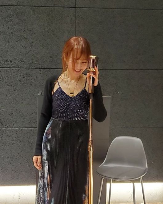 공개한 사진에는 우아한 검은색 드레스를 입고 스탠드 마이크 앞에서 노래를 부르는 모습이 담겨있다. 서정희는 진지하게 노래 연습에 임하며 멋있는 모습을 보여줬다.