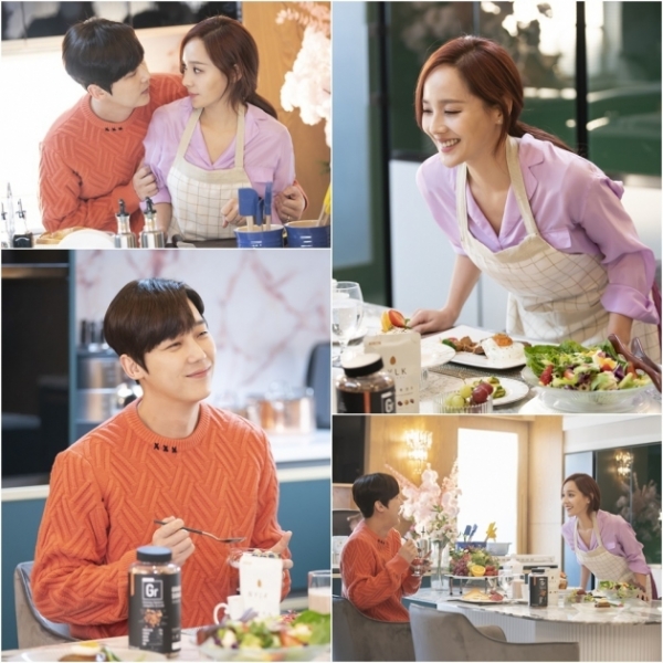 이와 관련 유진과 윤종훈이 신혼부부를 연상케 하는 달달함으로 서로를 마주 보고 있는 현장이 공개돼 설렘을 자극하고 있다. 극 중 오윤희와 하윤철이 함께 아침 식사를 하는 장면. 음식을 준비하고 있는 오윤희에게 하윤철이 다가서고, 이내 두 사람은 탁자를 사이에 두고 앉아 다정한 눈 맞춤으로 로맨틱한 분위기를 형성한다. 복수를 위해 위장 결혼을 한 비즈니스 커플이지만, 과거 첫사랑 관계였던 만큼 앞으로 두 사람의 감정이 어떻게 발전하게 될지 관심을 모으고 있다.