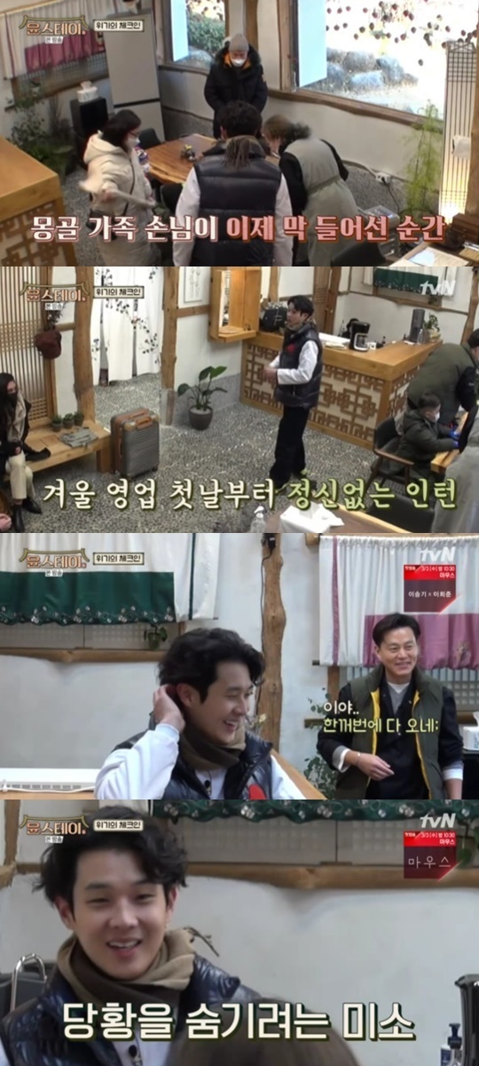 [스타인뉴스 양경모 기자] '윤스테이' 최우식이 한꺼번에 들이닥친 손님들에 당황했다.