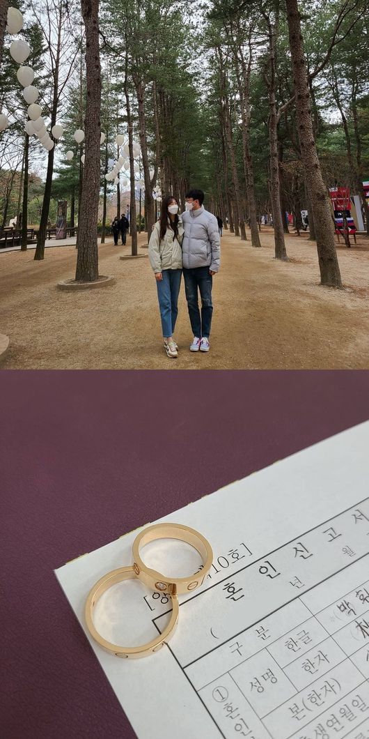 박휘순은 지난 28일 인스타그램(SNS)에 아내와 다정하게 찍은 사진과 함께 혼인신고 ‘인증샷’을 게재했다.