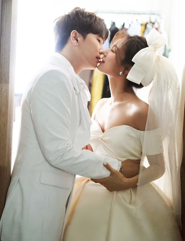 공개된 웨딩화보에서 예비신부 제니와 예비신랑 김수빈은 파격적인 블랙&레드 콘셉트부터 단아한 한복까지 다양한 스타일을 소화했다. 시종일관 얼굴에서 미소가 떠나지 않는 두 사람은 분위기부터 서로를 닮은 모습으로 훈훈함을 자아낸다.