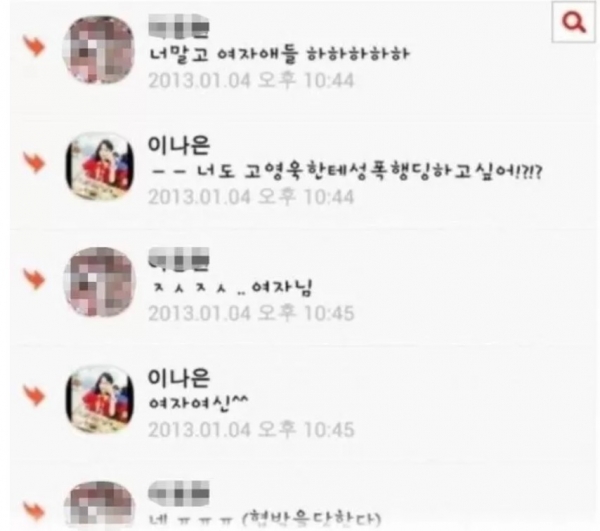 이어 "어느 날 같은 초등학교를 졸업한 언니가 놀러 와 반가움에 포옹을 했다는 이유로 '네 주제를 알고 나대라'라며 큰소리로 욕설을 했다"라며 "저는 그 당시 이나은이 포함된 무리 아이들에게 또 욕설을 들을까, 째려보진 않을까 하는 생각과 불안함에 학교에 가는 게 너무나 무서웠다. 20대 초반인 아직도 자존감이 회복되지 못했다"라고 털어놨다.