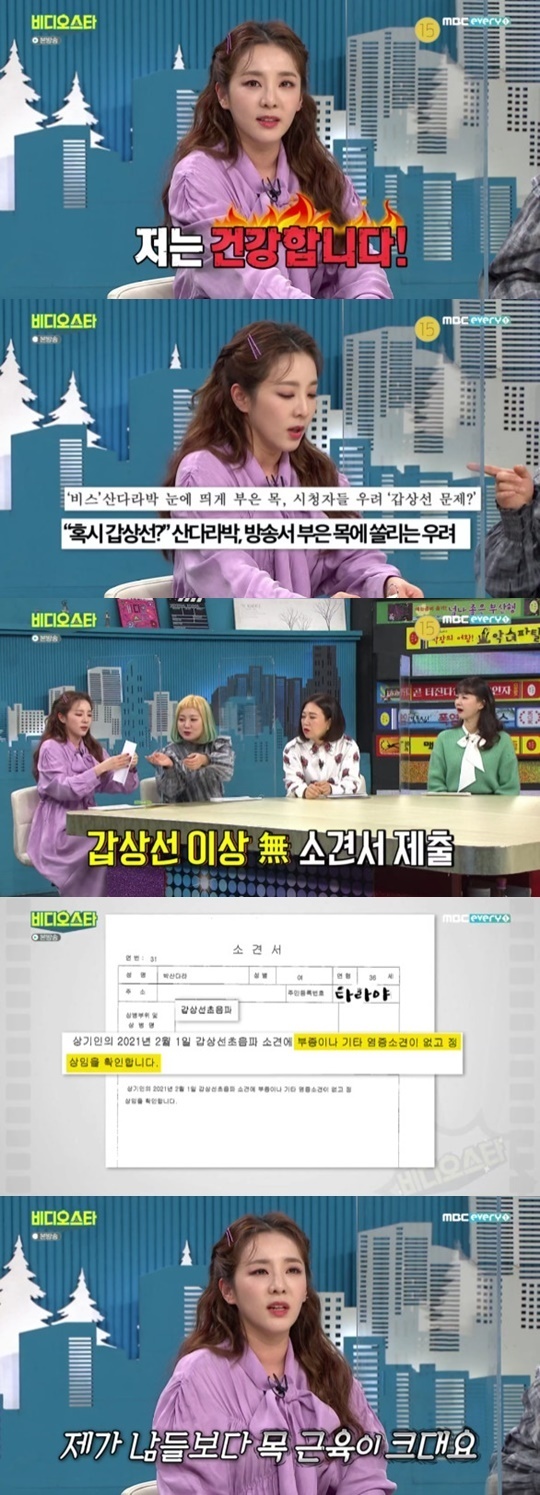 '비디오스타' 산다라박, 갑상선 소견서 제출…"목 근육이 큰 것"