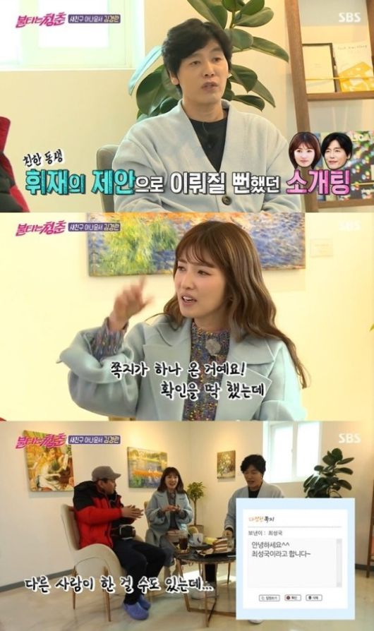 이날 최성국은 "10년 전쯤 소개팅 제의가 들어왔다. 그때 이휘재가 당시 '스펀지'를 같이 했던 김경란 아나운서랑 소개팅하겠느냐고 물어봤었다"고 회상했다.