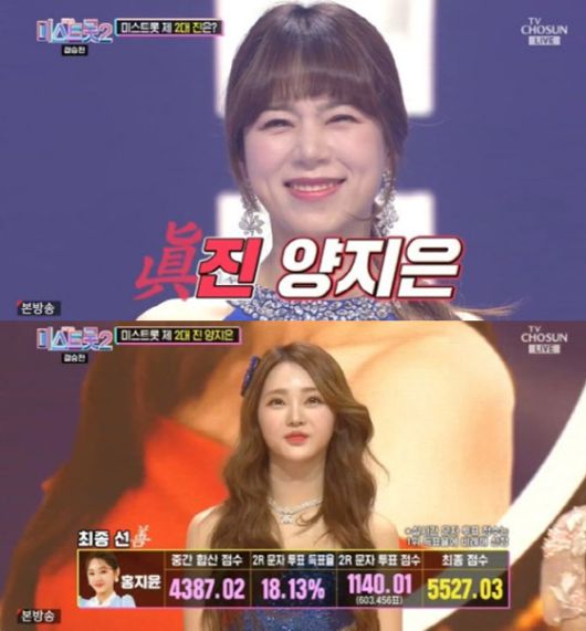 진에 오른 양지은은 '미스터트롯' 우승자 임영웅으로부터 왕관을, 마스터 장윤정으로부터 트로피를 받았다. 상금으로는 1억5000만원이 지급되며 조영수 작곡가의 신곡을 받게 된다.