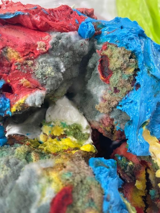 작성자는 일명 '솔비 케이크'로 유명한 카페에서 구매했다고 밝히며 곰팡이가 가득한 케이크 내부 사진을 함께 첨부했다.