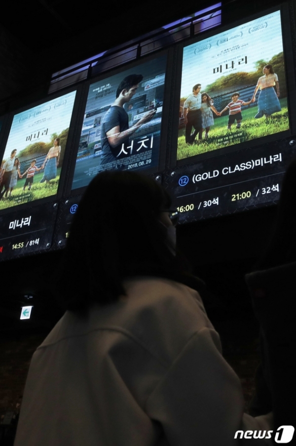 [스타인뉴스 김은영 기자] 영화 '미나리'가 개봉 닷세 만에 누적 관객수 27만 명을 넘어선 가운데 8일 서울 용산구 CGV용산아이파크몰에서 한 시민이 미나리 포스터를 바라보고 있다.