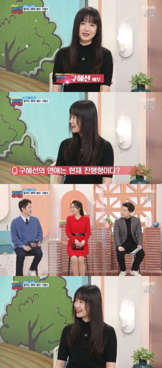 9일 오전 방송된 KBS 2TV '굿모닝 대한민국 라이브'에서 구혜선은 '연애가 현재 진행형이다?'라는 질문을 받았다.