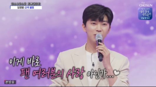 한편 임영웅은 지난해 TV조선 ‘미스터트롯’ 방송 직후 발매한 ‘이젠 나만 믿어요’로 대부분 출연진이 아이돌인 음악방송에 출연하며 그 인기를 입증한 바 있다