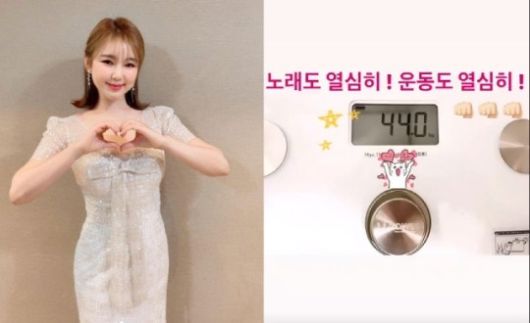 공개된 사진에는 44kg이라는 숫자가 적혀있는 체중계가 보인다.