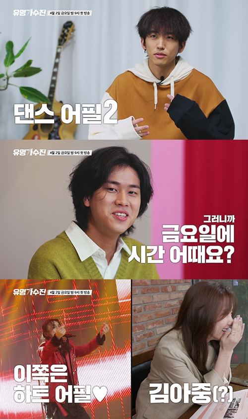이름만으로 존재감을 증명하는 '갓(GOD)유명가수' 아이유와 이제 막 이름을 알리기 시작한 '갓 유명가수' 이승윤-정홍일-이무진의 음악, 그리고 이야기는 4월 9일(금) 밤 9시 JTBC '유명가수전'에서 확인 가능하다.