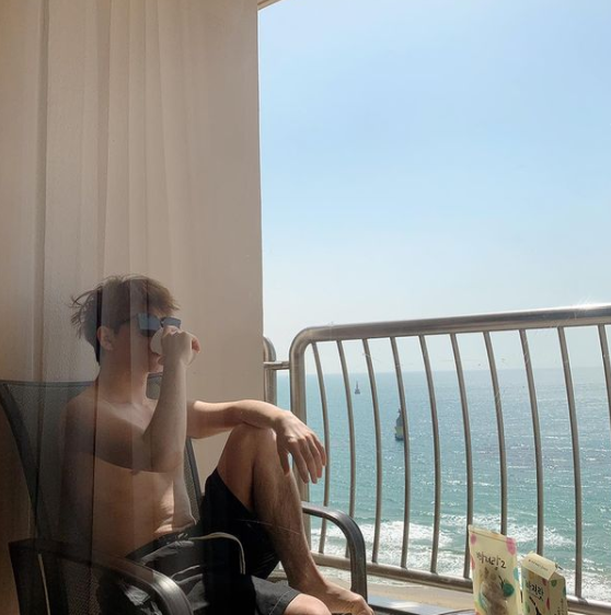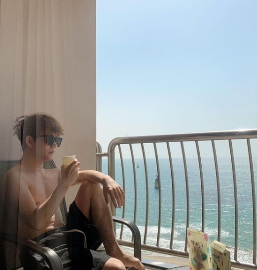 함께 공개된 사진 속엔 진화가 호텔 베란다에서 부산 바다를 바라보며 한껏 멋진 포즈를 취하고 있다. 특히 탄탄한 몸매와 멋있는 분위기가 눈길을 끈다.