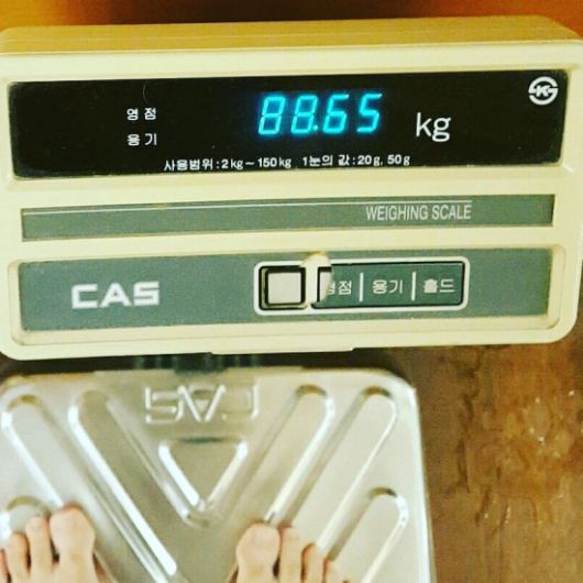 공개된 사진 속 그는 체중계 위에서 인증샷을 찍고 있다. 그의 현재 몸무게는 88.65kg. 과거 그는 다이어트를 통해 42kg을 감량해 화제가 된 바 있다.