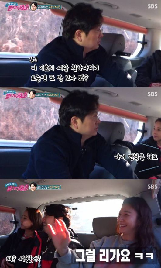 30일 오후 방송된 SBS '불타는 청춘'에서 김찬우는 안혜경에게 "너 이효리랑 친하다더니 요즘엔 또 안 보나 봐? 왜? 싸웠어?"라고 물었다.