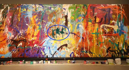 당시 그림 앞에는 전시 소품으로 붓과 물감이 놓여있었다. 전시장에서는 기본적으로 작품에 손 대지 않는 것이 관례지만 이 커플은 과감히 붓을 집어들어 초록 물감을 묻혀 화면에 발랐다. 그러자 사람 형상같은 획 몇 개가 더해졌다. 천편일률적이던 추상화에 구상(具象)이 주는 어떤 생동감이 깃들었다는 평가까지 나왔다. 한 네티즌은 이를 보고 “낙서 부분이 마치 세 사람이 발레하는 것 같다”며 “이런 게 현대미술 아니냐”고 반문했다. 그림 가격은 5억원 수준으로 책정돼있다.