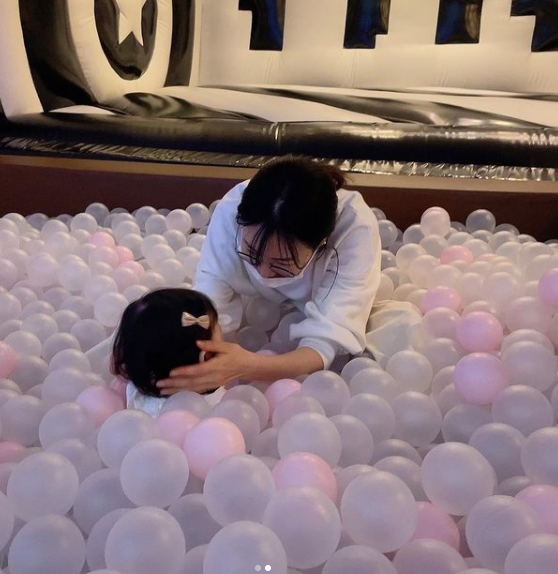 또한 딸을 품에 안고 키즈카페의 시설을 함께 체험하는 등 '딸바보' 면모를 드러냈다. 화장기 없는 얼굴과 질끈 묶은 머리, 수수한 옷차림이 여느 엄마와 다르지 않았다.