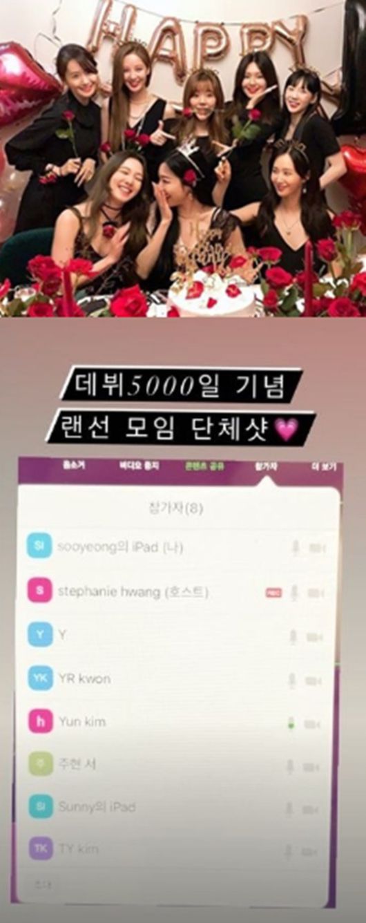 12일 소녀시대 최수영은 자신의 인스타그램을 통해 “데뷔 5000일 기념 랜선 모임 단체샷”이라는 글과 함께 한 장의 사진을 게재했다.