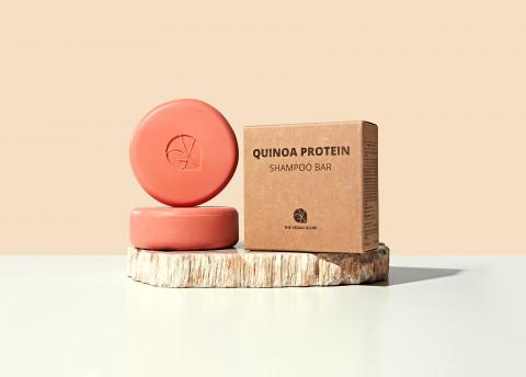 더비건글로우가 2021년 신제품으로 출시한 ‘퀴노아 단백질 샴푸바’는 밀, 현미 등 다른 곡물에 비해 단백질 함유량이 2배 이상 높은 슈퍼푸드 퀴노아 추출물 4000ppm과 함께 가수분해해 흡수율을 높인 하이드롤라이즈드콩단백질을 사용, 모발 및 두피 단백질 케어가 가능하도록 만들었다.