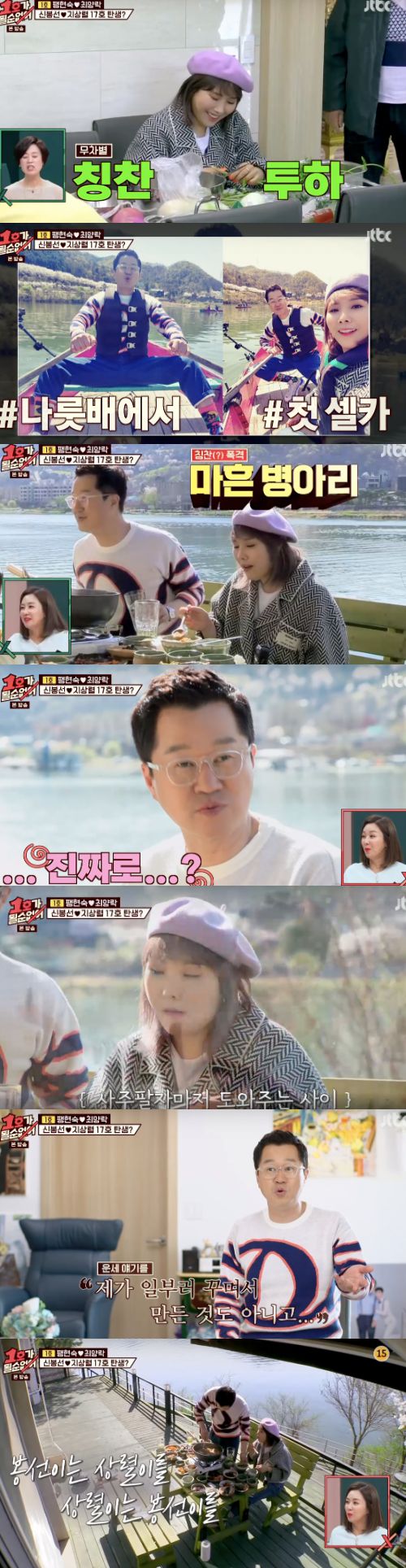 [스타인뉴스 김학철 기자] 2일 방송된 JTBC 예능프로그램 '1호가 될 순 없어'(이하 '1호가')에서는 개그우먼 조혜련이 게스트로 출연한 가운데, 최양락-팽현숙 부부가 후배 신봉선, 지상렬과 벚꽃 나들이를 떠나는 모습이 그려졌다.