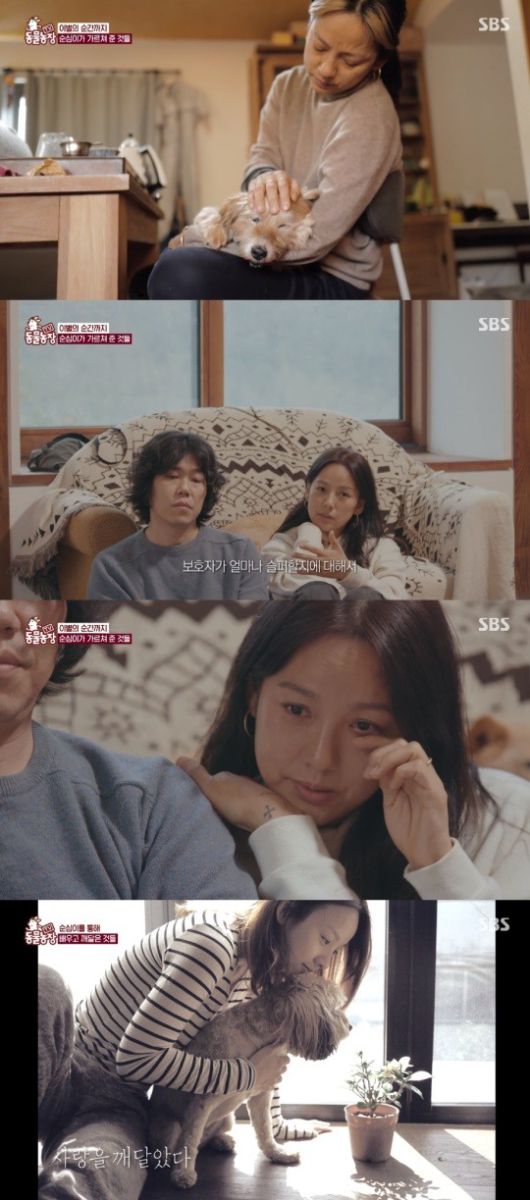 지난 9일 방송된 SBS 시사교양프로그램 ‘TV 동물농장’에서는 이효리와 그녀의 반려견 순심이와의 이별 이야기가 그려졌다. 10년 전 한 유기 보호소에서 만나 효리의 가족이 된 순심이는 지난겨울 무지개다리를 건넜다. 그리고 이효리와 이상순 부부는 순심이와의 시간을 온전하게 추억하기 위해 순심이와 가장 오랜 시간을 함께 보낸 제주에서의 신혼집을 다시 찾았다.