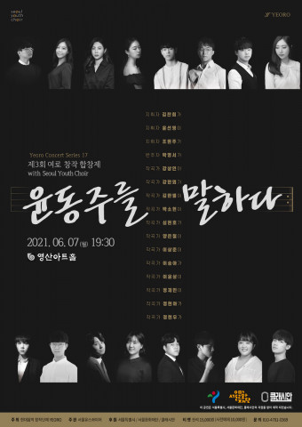 [스타인뉴스 온라인뉴스팀] 현대음악 창작단체 YEORO(대표 이상준, 이하 여로)의 ‘제3회 여로 창작 합창제 - 윤동주를 말하다’가 6월 7일(월) 오후 7시 30분 서울 여의도 영산아트홀에서 개최된다. 다양한 한국 작곡가의 창작합창곡의 엿볼 수 있는 이번 음악회에서는 젊은 작곡가 12명의 창작 작품을 감상 할 수 있다.